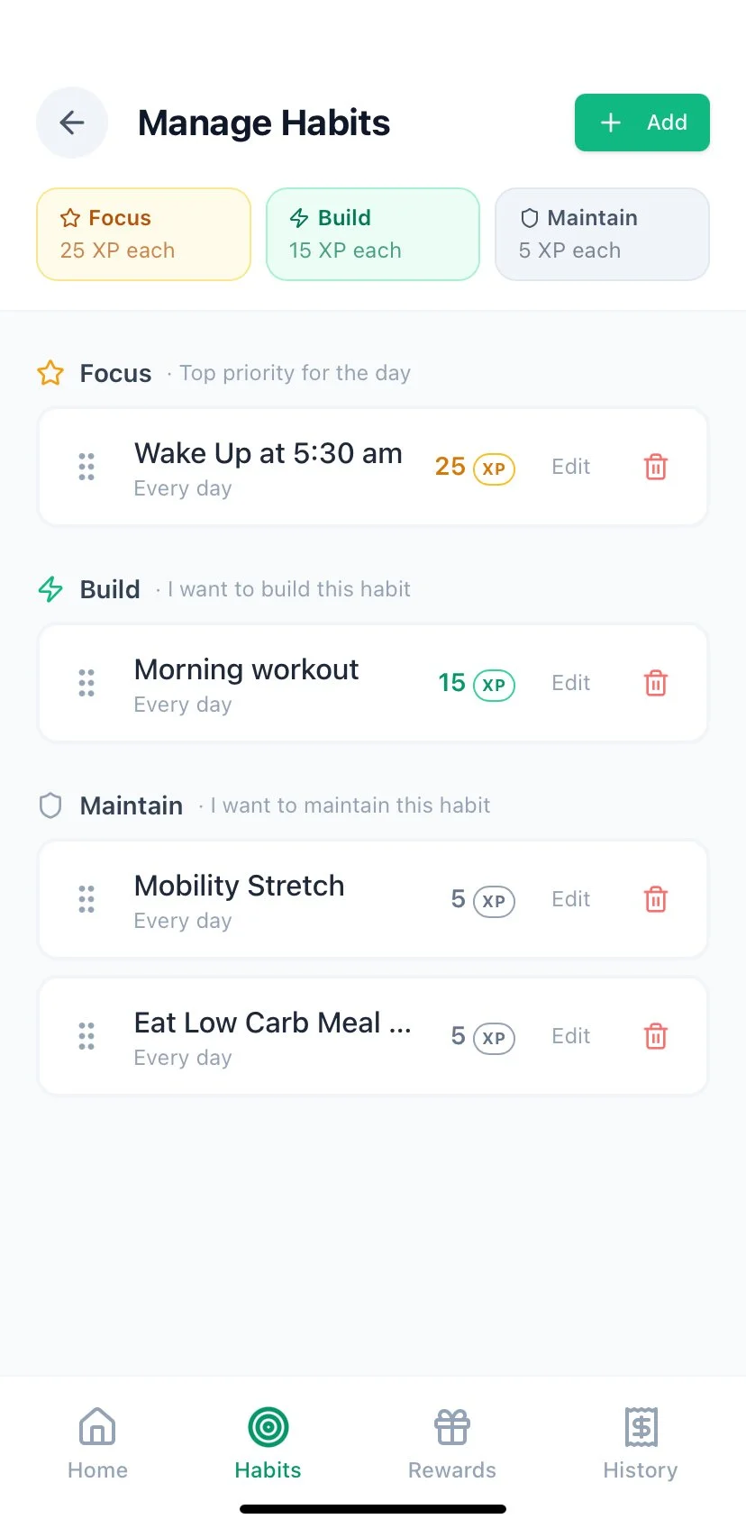 Earn points for building habits and set personal rewards to celebrate your success.